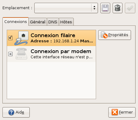 Sélectionnez votre interface réseau (Ethernet ou Wifi en général) puis cliquez sur Propriétés .